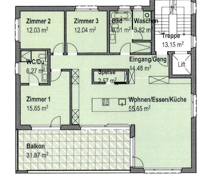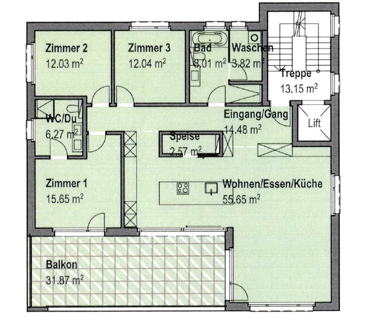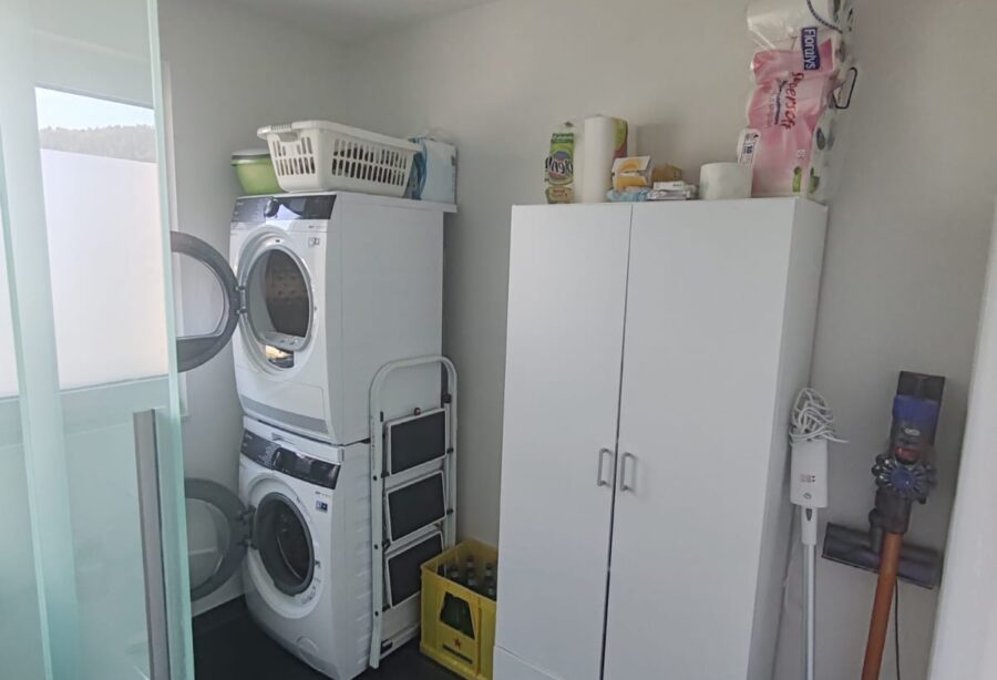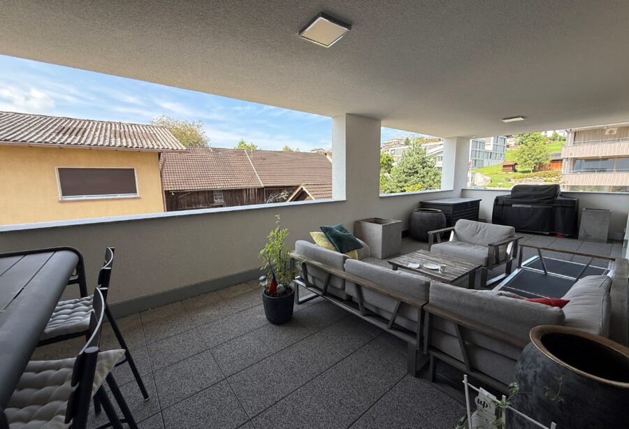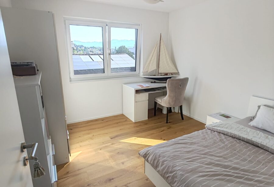 Das grosszügige Objekt umfasst einen Eingangsbereich mit Einbaugarderobe, ein Badezimmer mit integrierter Waschküche, drei Schlafzimmer sowie einen offenen Wohn-/Ess-/Küchenbereich inklusive Speis. Eine sonnige Loggia lädt zum Verweilen ein. Zum Angebot gehören zudem ein separates Kellerabteil, ein Unterstellplatz sowie ein Aussenabstellplatz.