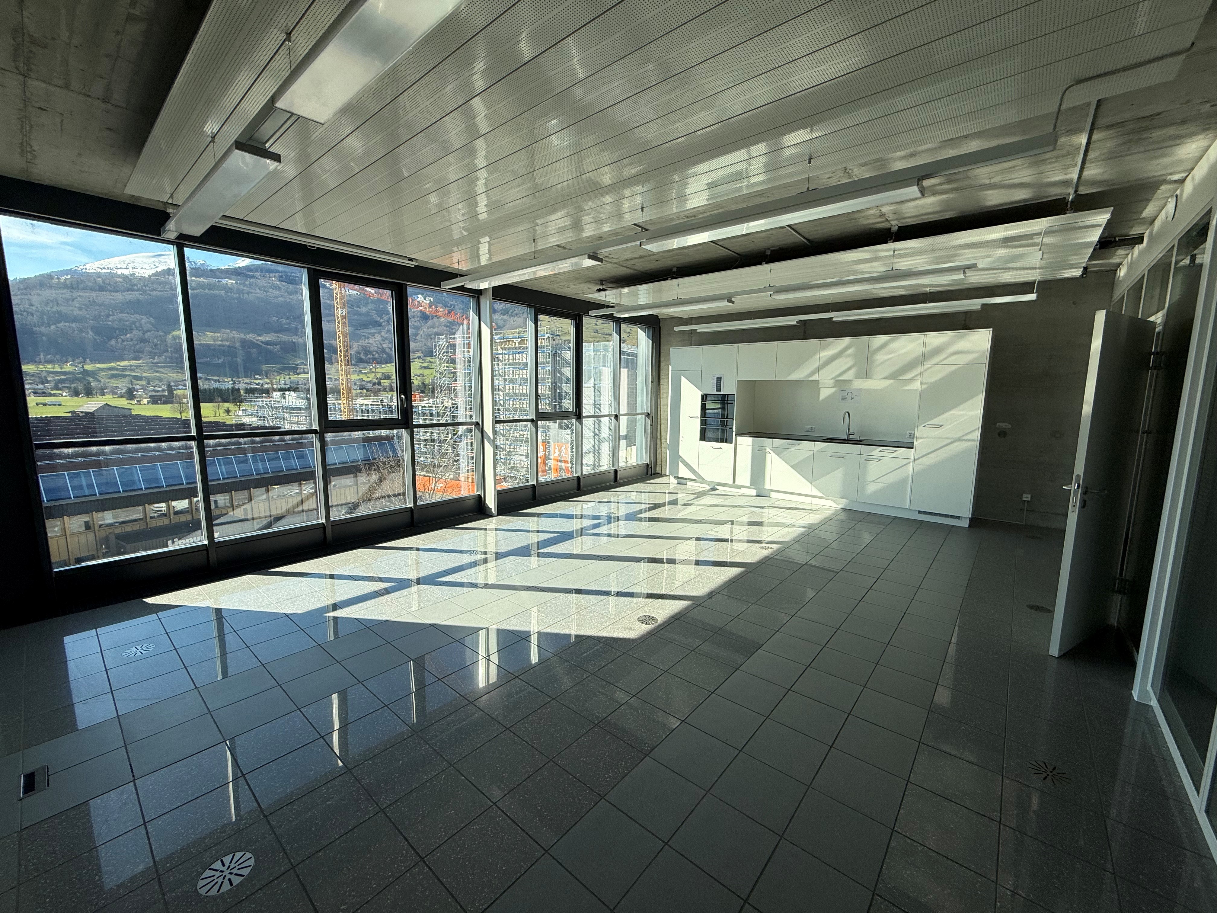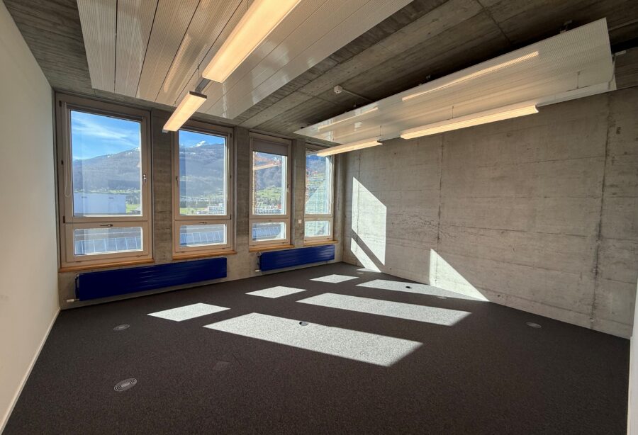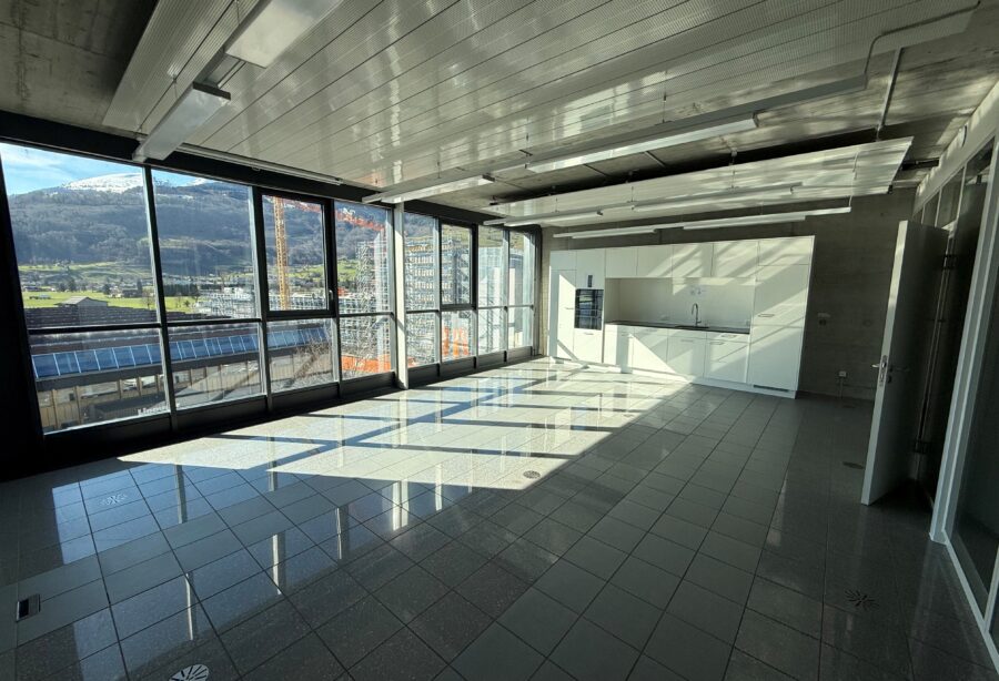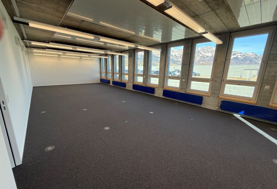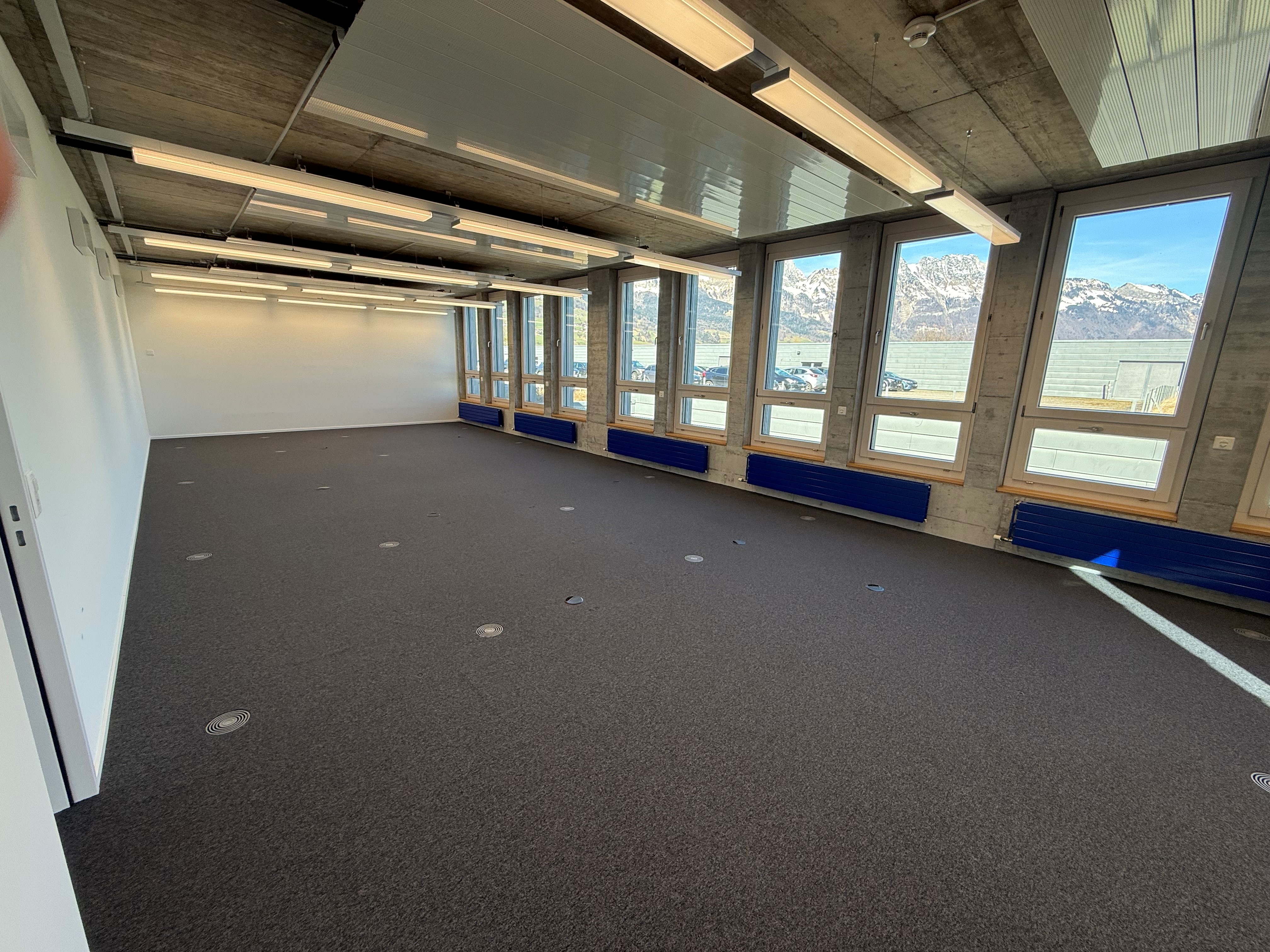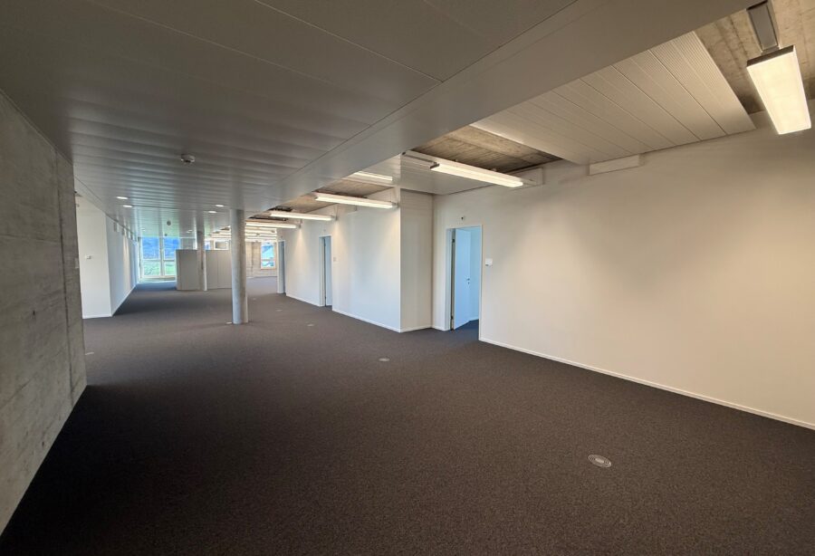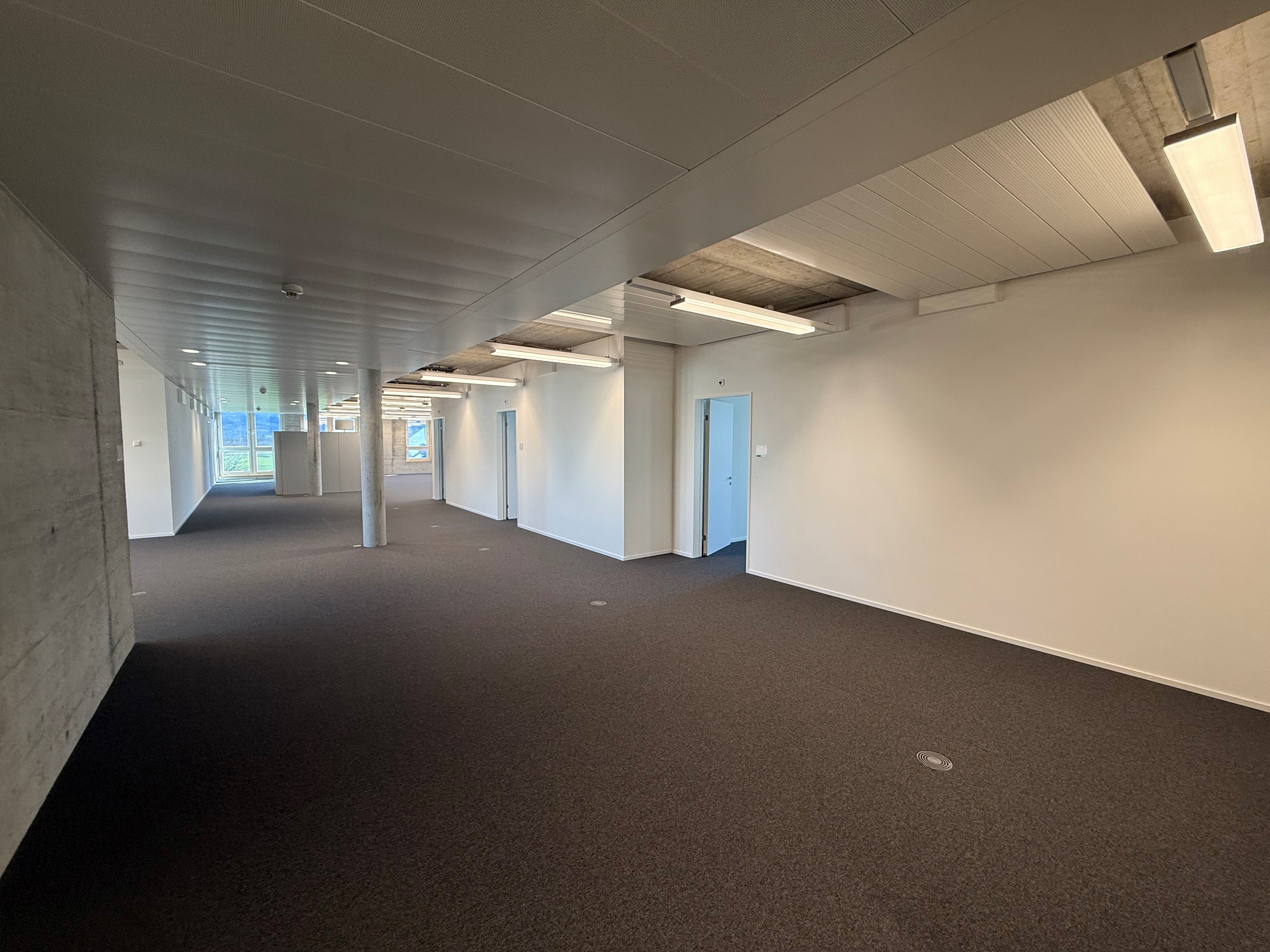 Die Fläche umfasst drei separate Büros, ein großzügiges Sitzungs- bzw. Schulungszimmer sowie eine praktische Büronische, die sich ideal für zusätzliche Arbeitsplätze oder konzentriertes Arbeiten eignet. Zusätzlich steht eine Küche inkl. Aufenthaltsbereich zur Verfügung und es können bis zu 40 Aussenparkplätze dazugemietet werden.